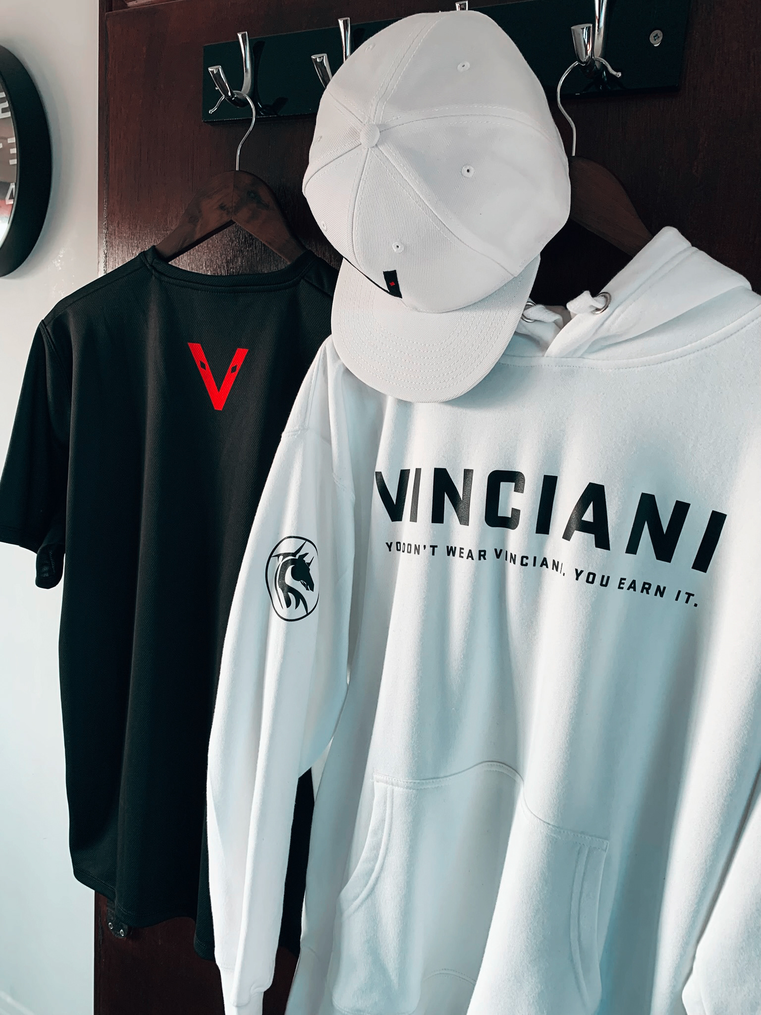 Vinciani was never just designed to be a single logo on a garment, it is engineered as a brand system made of structural divisions that speak the same language of its entire brand DNA representing Strength, Discipline, Design.